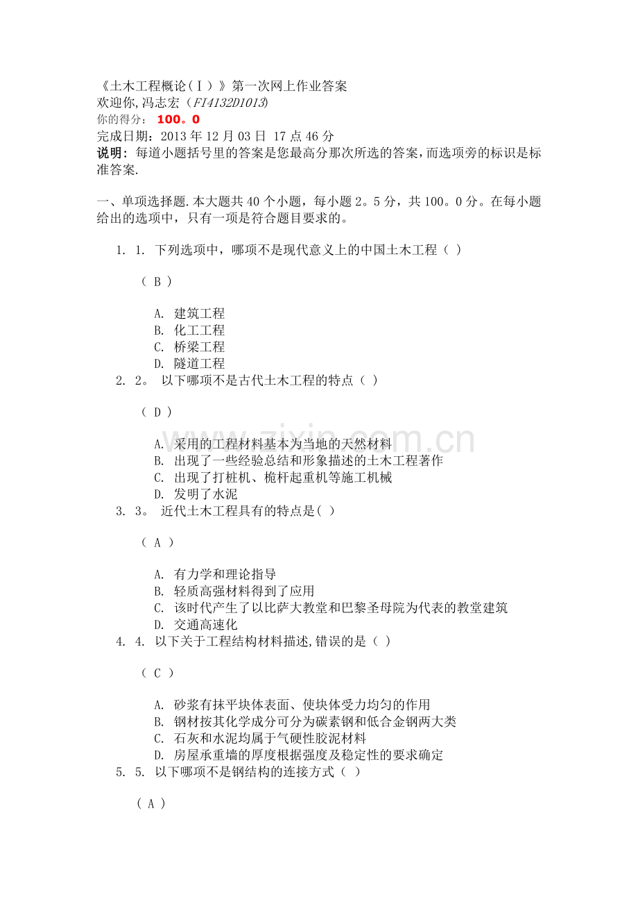 《土木工程概论(Ⅰ)》第一次网上作业答案