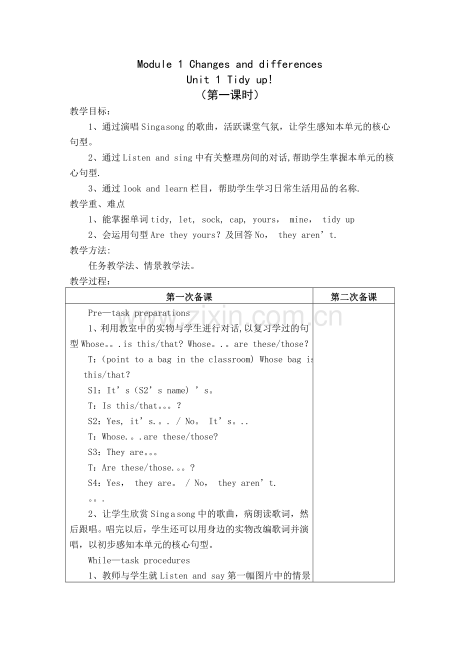 1、能掌握单词tidy, let, sock, cap, yours, mine, tidy up