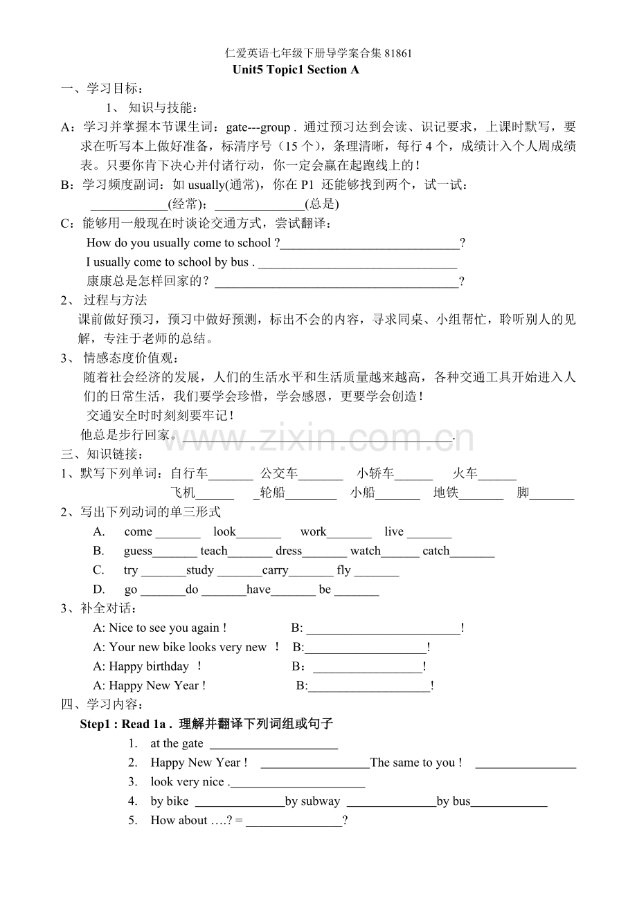 1、默写下列单词:自行车_______ 公交车_______ 小轿车______ 火车______