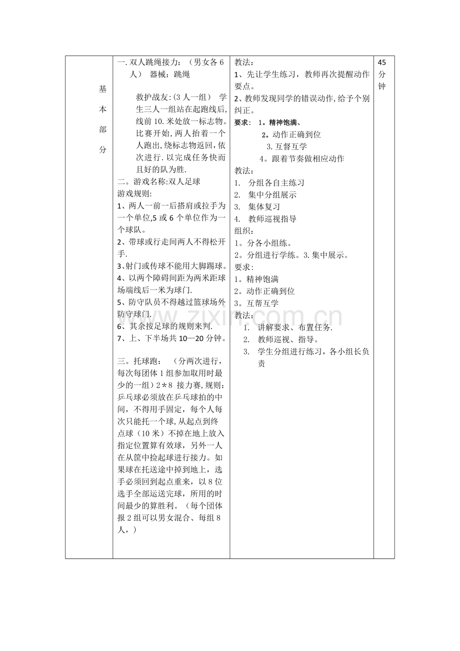 3.发展学生的奔跑能力与培养学生团结协作的精神