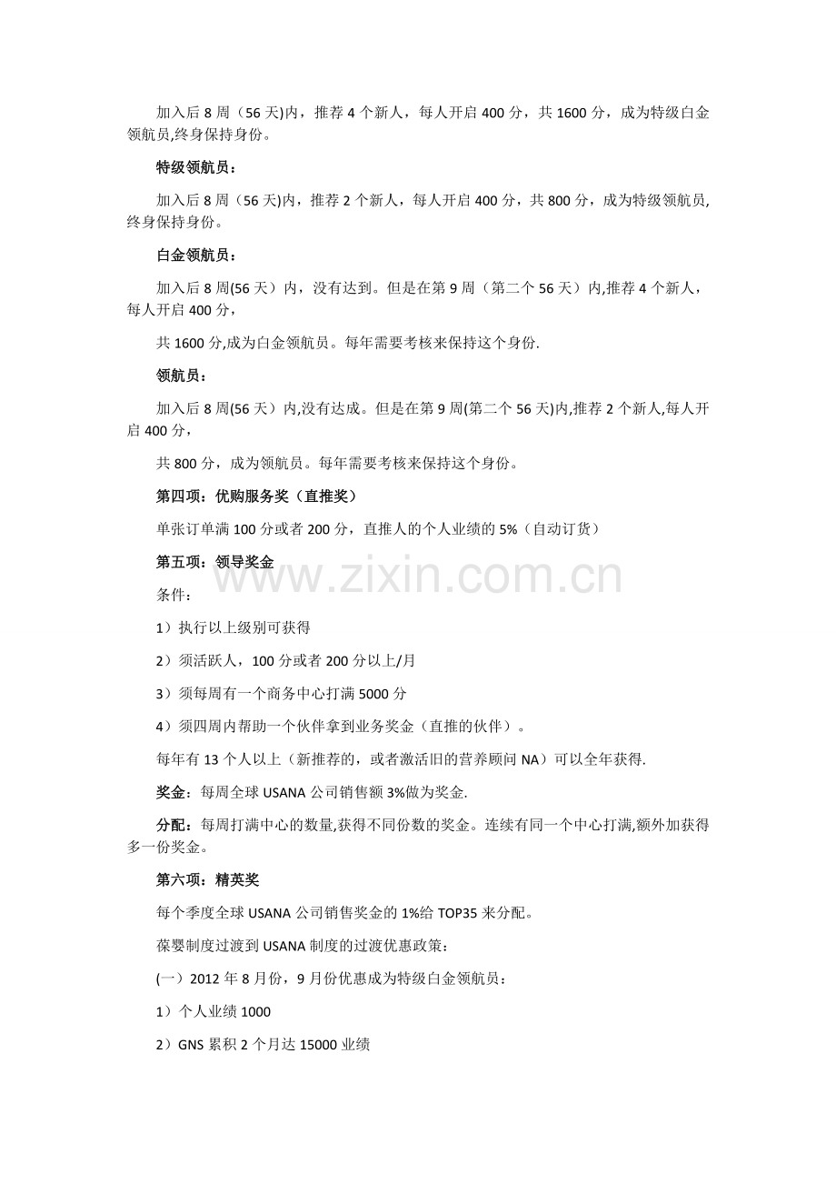 1)优购服务奖金(直推奖):葆婴老制度4%,usana新制度5%,过渡计划为10%