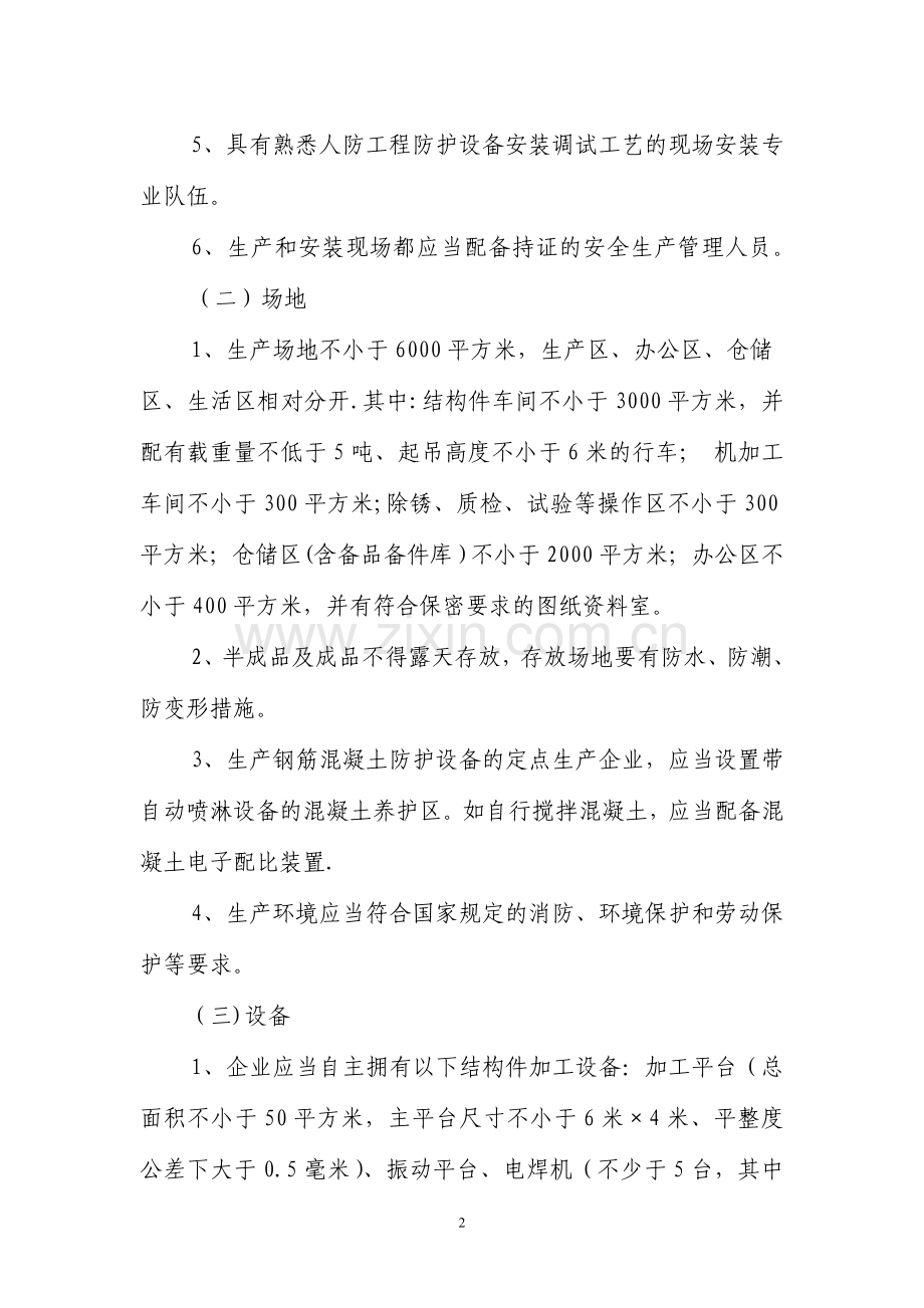 (摘自国家人防办《人防工程防护设备定点生产企业管理规定》)