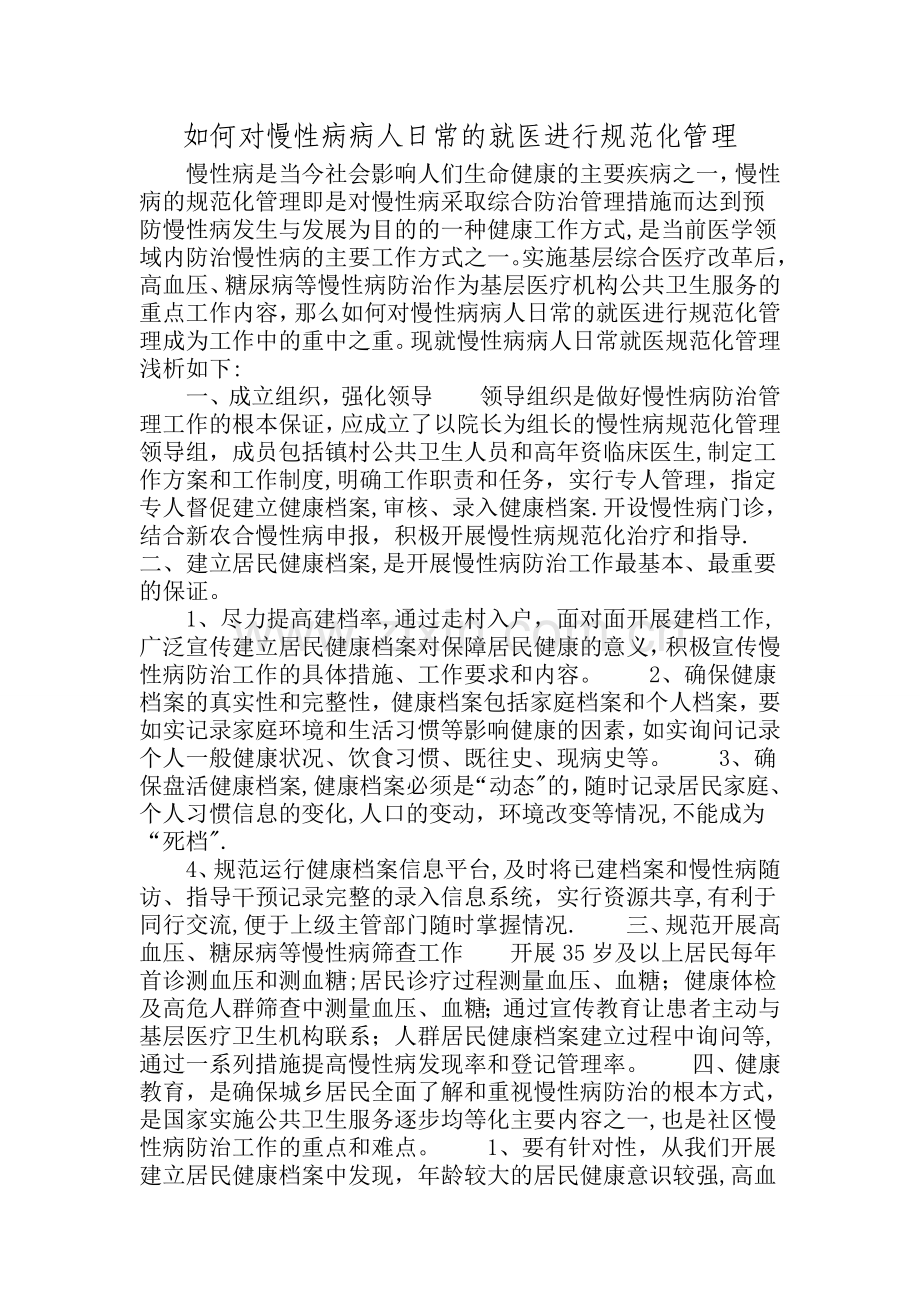 如何对慢性病病人日常的就医进行规范化管理