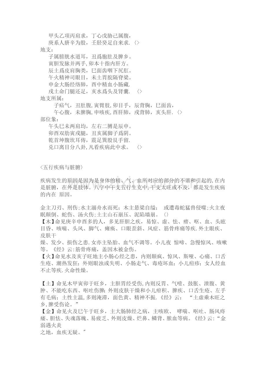 疾病发生的原因是因为是身体的精、气、血所对应的部分的不谐和引起的,在内是脏腑,在外是肢体。八字中干支五行生克中,干支太旺或不及,都是发生疾病的内在 原因。
