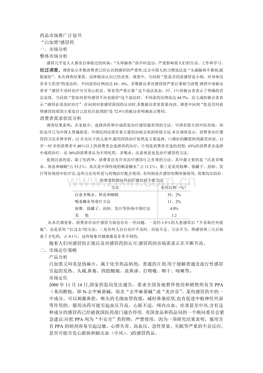 药品市场推广计划书
