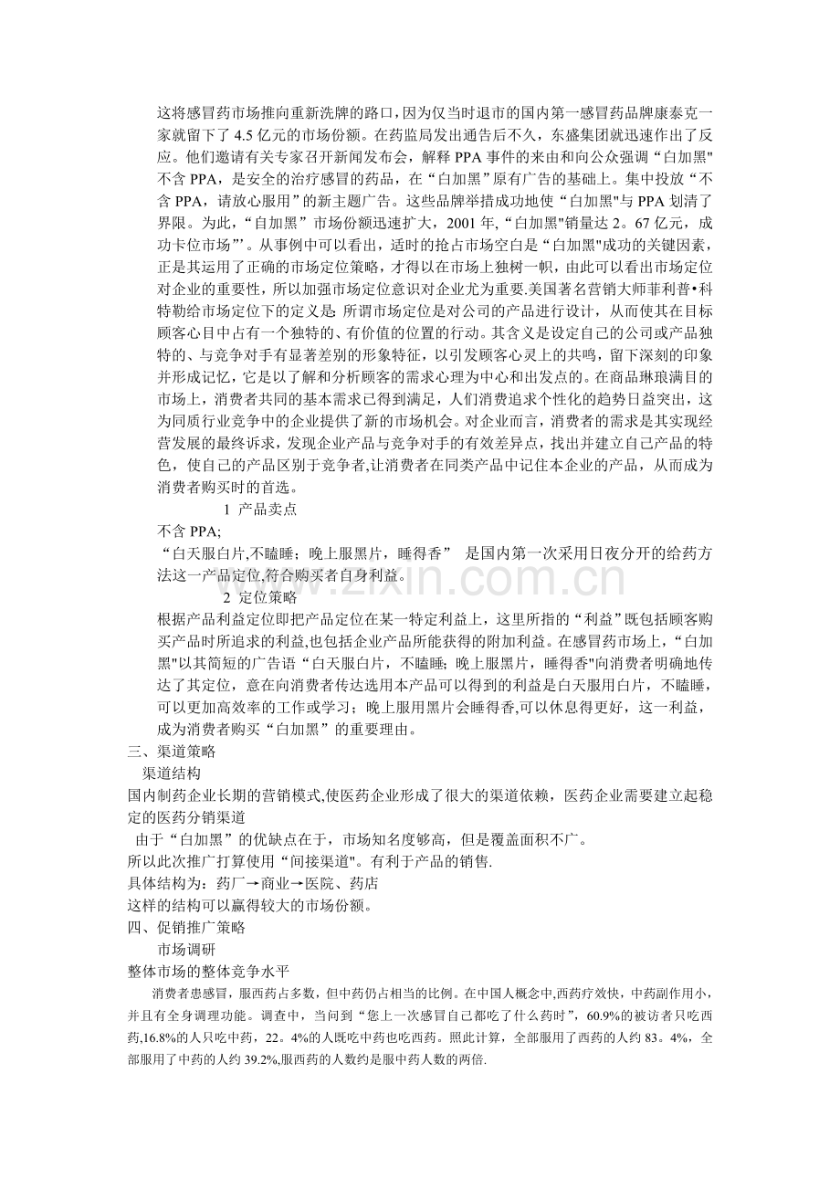 总体来说,“白加黑”最大的竞争对手是“康泰克”感冒药