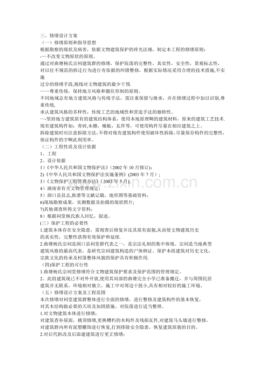 (五)修缮设计方案及工程范围