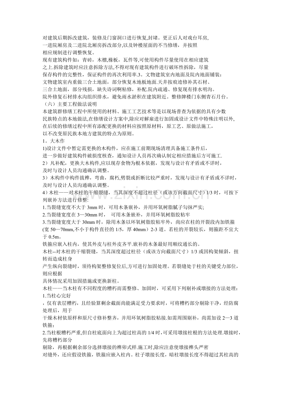 本建筑群修缮工程中所使用的材料、施工工艺技术等是以现场普查为依据的具有少数