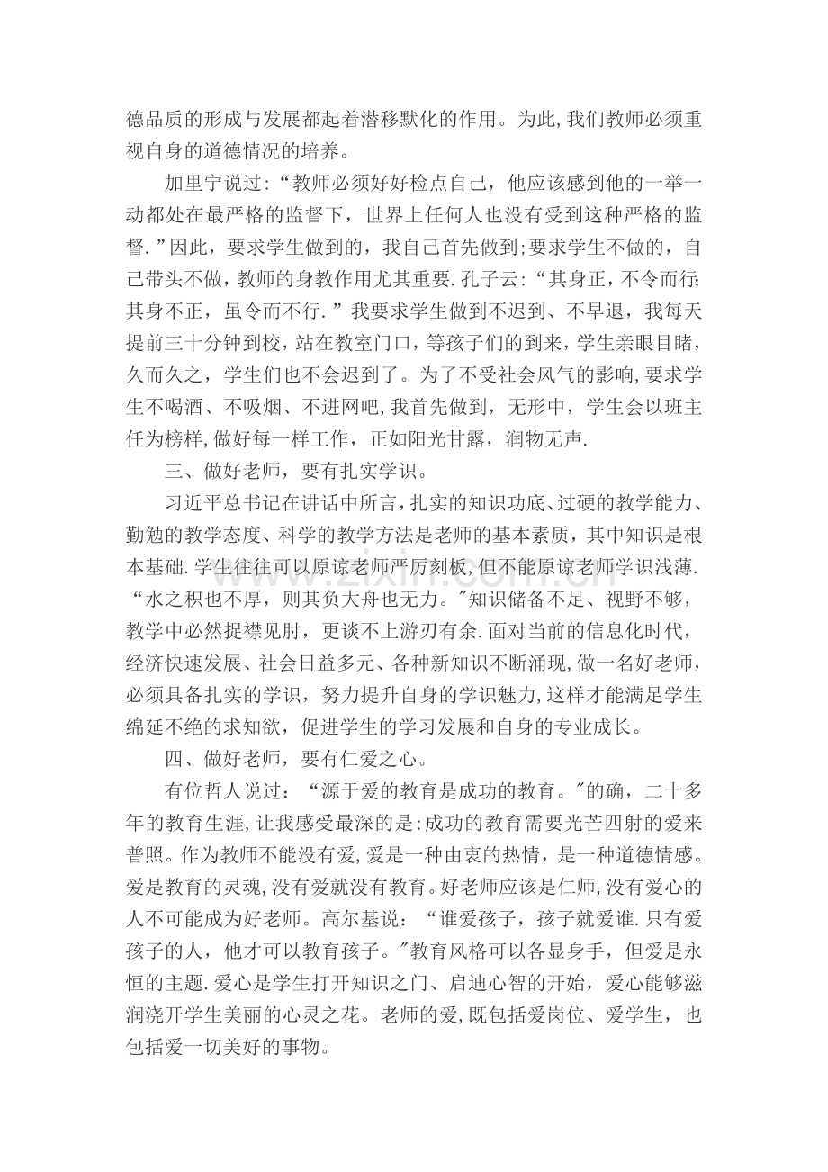 在教学中,教师的教学水平直接决定了所培养学生的科学素质,教师的工作热情影响着学生将来的职业素养和社会责任感。一名合格的老师不仅要传授学生科学知识,还应该用自己的道德情操为学生树立良好的榜样,用自己的职业操守去影响学生,培养更多品学兼优、富有创造力和社会责任感的优秀人才,这样,祖国的未来才有希望,国家才能富强,所以我们的担子很重,只有严格按照总书记的要求去做,才能不辜负党和人民对我们的希望!教师不仅是一份职业,更是一份事业,我们要热爱自己的教育生涯.