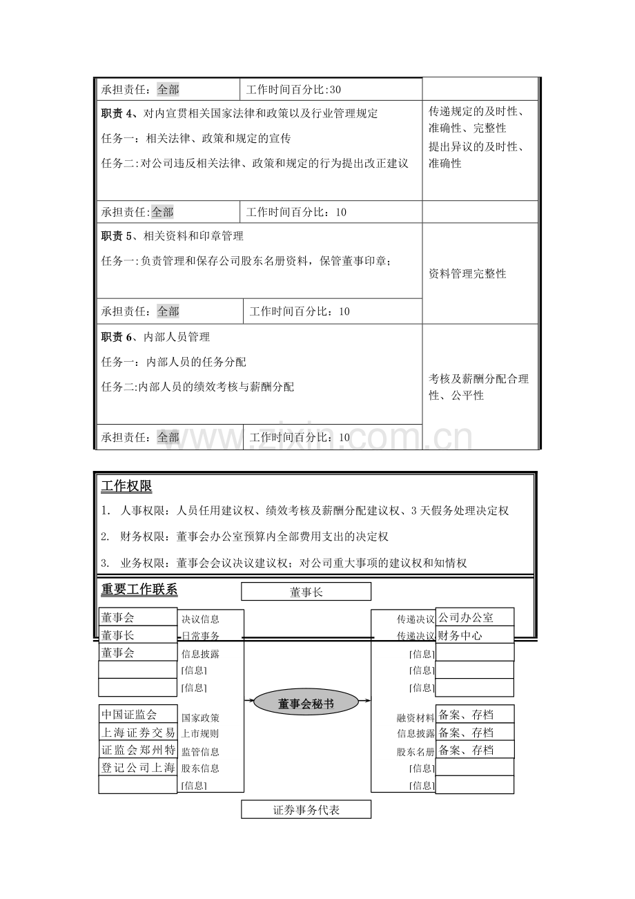 职责2、负责与国家相关部门与证券管理机构的工作联系