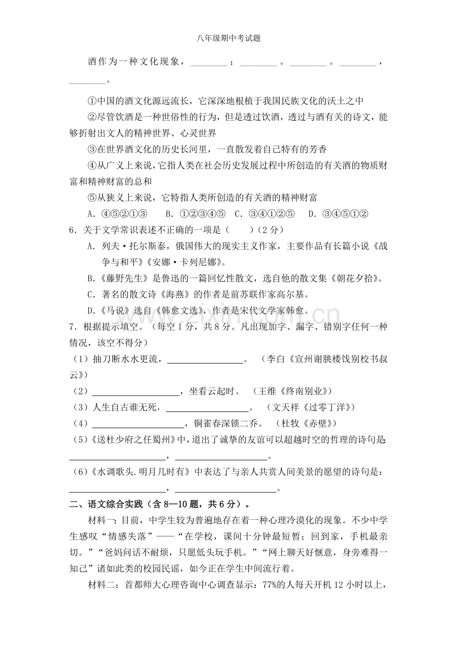 7.根据提示填空。(每空1分,共8分。凡出现加字、漏字、错别字任何一种情况,该空不得分)[来源:Zxxk.Com]