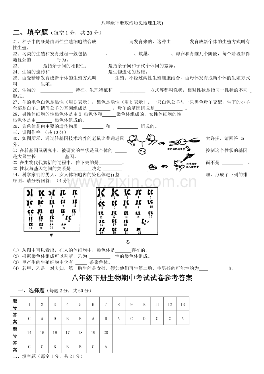 25、由受精卵发育成新个体的生殖方式叫____ 生殖;不经过两性生殖细胞结合,由母体发育成新个体的生殖方式叫___ ___生殖。