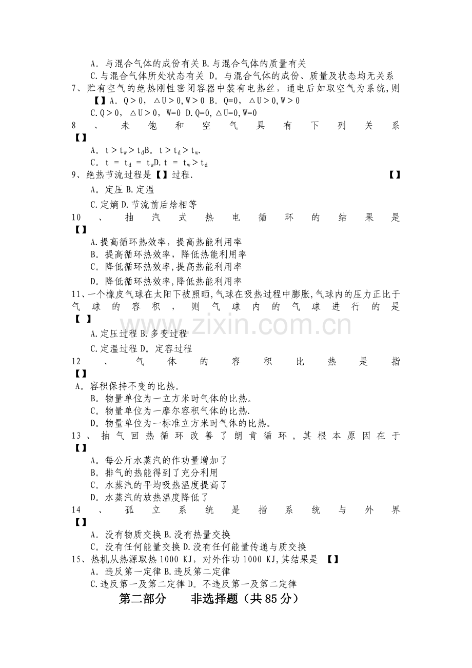 7、贮有空气的绝热刚性密闭容器中装有电热丝,通电后如取空气为系统,则 【】A。Q>0,△U>0,W>0 B。Q=0,△U>0,W>0