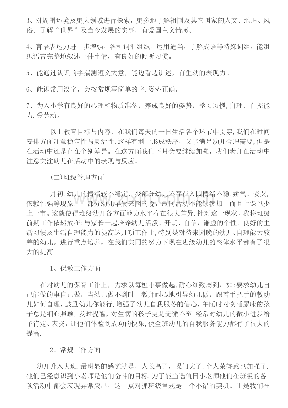 以上教育目标与内容,在我们每天的一日生活各个环节中贯穿,我们在时间安排方面注意稳定性与灵活性,这样有利于形成秩序,又能满足幼儿合理需要,但是在活动中还是存在个别差异。在这方面我们下月会要继续加强,我们老师在活动中注意关注幼儿在活动中的表现与反应。