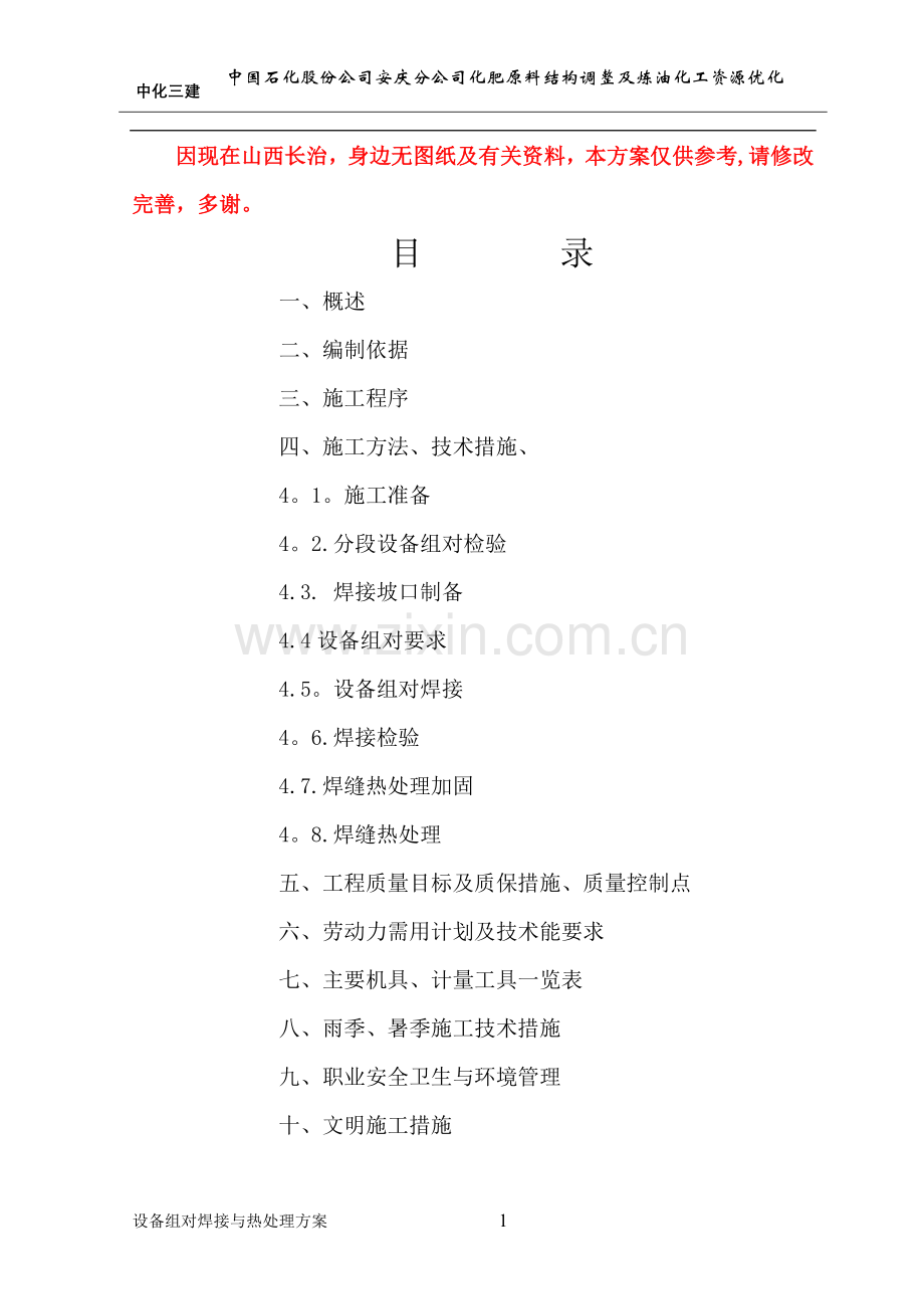 1.2。根据设计图纸要求现场组对焊缝焊后需进行消除应力热处理.