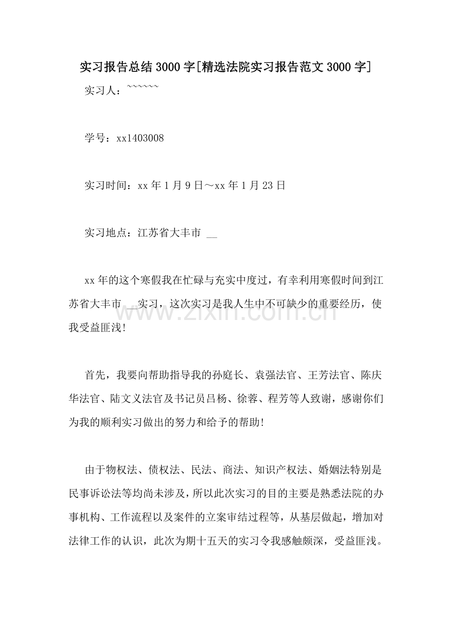 实习报告总结3000字[精选法院实习报告范文3000字]