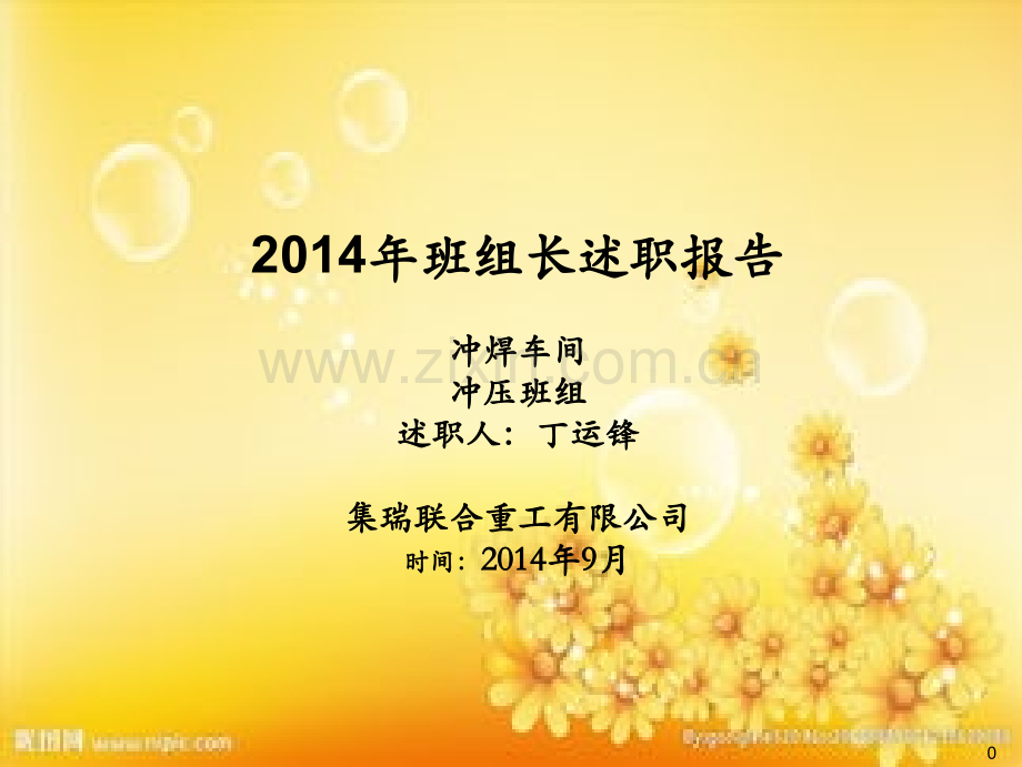 02014年班组长年班组长述职报告述职报告 冲焊车间冲焊车间冲压班组冲压班组述职人:丁运锋述职人:丁运锋 集瑞联合重工有限公司集瑞联合重工有限公司时间:时间:20142014年年9 9月月 1 目目 录录第一部分第一部分 个人简介个人简介 1 1、工作经历、工作经历 2 2、对述职岗位的认识对述职岗位的认识 3 3、后续的工作思路后续的工作思路第二部分第二部分 课题研究课题研究 1 1、质量管理、质量管理 1 1、课题、课题 2 2、课题产生的来源、课题产生的来源/原因分析原因分析 3 3、可行性方案及方案价值评估、可行性方案及方案价值评估 2 2、生产安全及、生产安全及5S5S管理管理 1 1、发现的安全及、发现的安全及5S5S管理问题清单管理问题清单 2 2、改善前后对比、改善前后对比第三部分第三部分 总结总结 2第一部分第一部分 个人简介个人简介32014年担任冲压班组长,主要做好人员培养。20102012201320142011年正式任命冲压班长,驻奇瑞五冲进行冲压件批量生产。2013年担任冲压班组长,主要做好团队建设。2010年7月正式入职集瑞联合重工有限公司,主要工作内容:培训、学习、参与设备调试;1 1、工作经历、工作经历第一部分第一部分 个人简介个人简介20112012年担任冲压班长,主要负责模具调试工作。4第一部分第一部分 个人简介个人简介安全生产管理安全生产管理时间和绩效管理时间和绩效管理成本管理成本管理质量管理质量管理负责所辖区域及人员的安全作业管理,积极开展安全系列活动;在确保安全和质量下完成产量。做好JIT生产,负责人员管理、培训、绩效评估和激励。对生产辅料做好现场数据收集和跟踪,建立台账,及时汇报。做好三不原则;做好“三自一控”,做好冲压封样件评审工作。做好设备一级保养工作,支持开展TPM活动;设备管理设备管理做好现场目视化管理;异常及突发问题的分析、反馈、制定对策落实;现场管理现场管理1.2 1.2 个人主要个人主要工作内容工作内容 描述描述:(P)产量变化分别图5第一部分第一部分 个人简介个人简介1.3 1.3 班组班组工作工作业务汇报:业务汇报:20122013解析:20112013年期间,我们班组人数一直在12人左右的情况下完成的产量。1.3.1 20112013年度冲压班组生产自制件产量变化情况(P):1822818228201161.3.2 20112013年度冲压班组质量达标情况(Q):第一部分第一部分 个人简介个人简介控制方法及要点(三不原则、三自一控):控制方法及要点(三不原则、三自一控):1.做好原材料进货检查做好原材料进货检查 严格对来料的规格、牌号以及表面等级质量进行检查,不接受卷边、划伤、压伤、锈蚀以及包装存在缺陷的板料。2.做好冲压质量过程管控做好冲压质量过程管控 a、做好模具保养工作;b、收集在线生产模具问题进行整改;3、培养员工技能、培养员工技能 a、培养员工质量意识;b、培养员工检验能力;71.77%90.4190.41%93.7693.76%加油加油2011年年2013年冲压质量合格率趋势及达标情况年冲压质量合格率趋势及达标情况2011年2012年2013年2014年71.3.3 20112013年度冲压班组成本管理变化情况(C):第一部分第一部分 个人简介个人简介2011工具工具辅料辅料冲压报废件冲压报废件从班组生产成本管理中关键的项目控制:2012201320112012201320112012201320种10种4种16种10种5种299件301件192件8第一部分第一部分 个人简介个人简介1.3.4 20112013年度冲压班组交货期达标情况(D):一条生产线130副模具28种原材料DB:9种件DE:13种件DA:25件件冲压物流满足价值转化原则:合理安排生产计划,通用件生产产量要大于原则:合理安排生产计划,通用件生产产量要大于专用件生产产量,内外板件交错排产,先易后难。专用件生产产量,内外板件交错排产,先易后难。规定:当天批次生产完成,当批次办理入库规定:当天批次生产完成,当批次办理入库9第一部分第一部分 个人简介个人简介1.3.5 20112013年度冲压班组安全管理达标情况(S):重大安全生产事故-零重大火灾-零 重大交通事故-零重大治安刑事事故-零一般治安事件-零火险/火情-零微伤事故-零一般安全事故-零PDCA 自公司推行中集“9+8”安全管理体系以来,我们积极在班组内开展一日安全员活动、指名作业活动、KYT活动、班组安全例会,由于这些活动的开展,我们的安全管理工作行之有效,保证了我们每位员工在工作中平平安安。安安全全零零事事故故1.3.6 20112013年度冲压班组人员变化情况(M):第一部分第一部分 个人简介个人简介201120122013(unit:%)1、员工离职率:2、员工岗位达标率:(unit:%)2011201220130.2%0.2%80%60%75%解析解析1 1:2011201120132013年度员工离职率基本上是稳定在年度员工离职率基本上是稳定在0.2%0.2%左右,表明班左右,表明班组成员具有一定的稳定性。组成员具有一定的稳定性。解析解析 2 2:2011201120132013年度员工岗位达标率呈上升趋势,说明员工重视自年度员工岗位达标率呈上升趋势,说明员工重视自身技能的提高,也重视自身的知识水平的扩展。身技能的提高,也重视自身的知识水平的扩展。100.19%11第一部分第一部分 个人简介个人简介2 2、对述职岗位的认识:对述职岗位的认识:从公司组织的培训课程一线主管角色认知中,我得到了如下收益与启收益与启发发:不是不是班组长班组长是是保姆保姆警察警察消防消防队长队长指挥指挥教练教练舵手舵手班组长班组长刚柔并济影响力亲和力控制力从课程中,我认知了一线主管的职责和角色