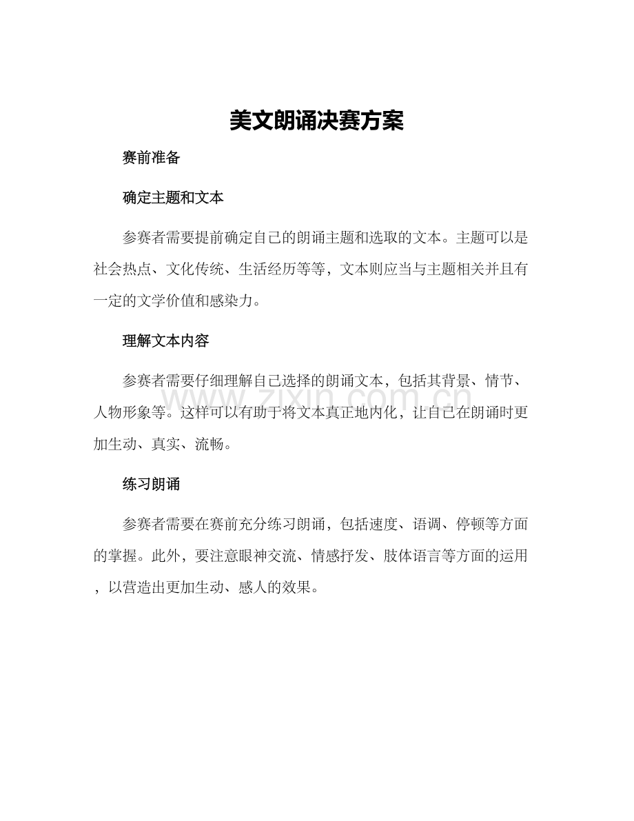 参赛者需要提前确定自己的朗诵主题和选取的文本。主题可以是社会热点、文化传统、生活经历等等,文本则应当与主题相关并且有一定的文学价值和感染力。