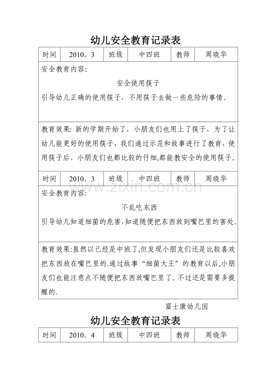 幼儿安全教育记录表