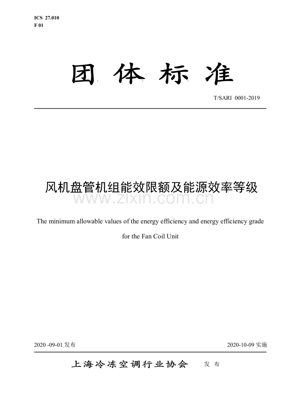 T∕SARI 0001-2019 风机盘管机组能效限额及能源效率等级.pdf