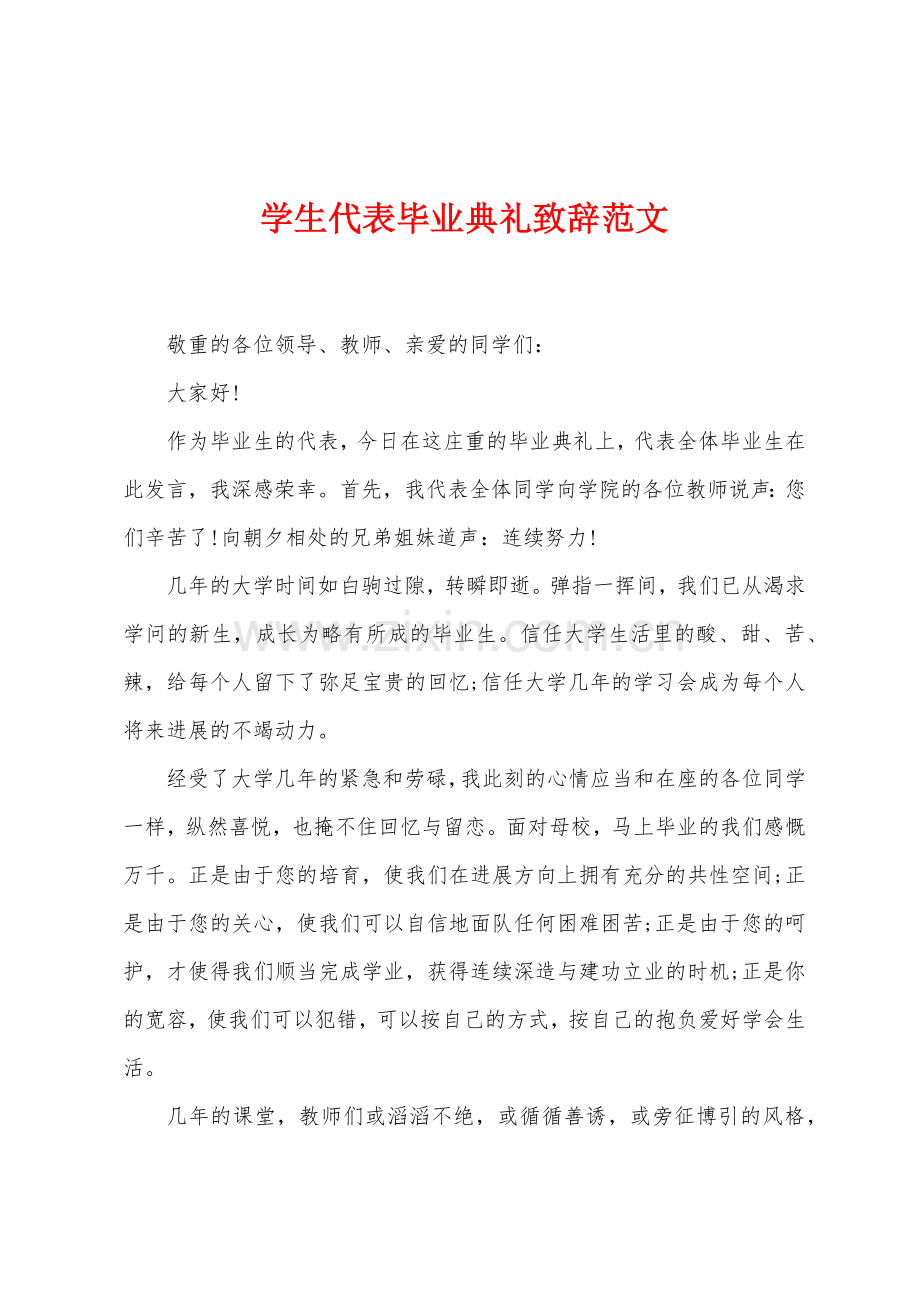作为毕业生的代表,今日在这庄重的毕业典礼上,代表全体毕业生在此发言,我深感荣幸。首先,我代表全体同学向学院的各位教师说声:您们辛苦了!向朝夕相处的兄弟姐妹道声:连续努力!