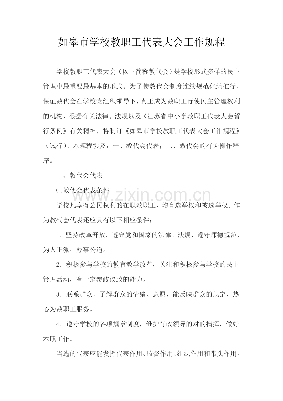 如皋市学校教职工代表大会工作规程