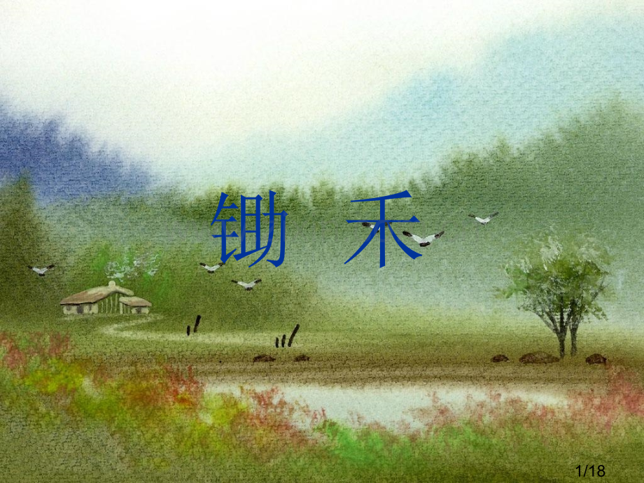 锄 禾1/18听故事,你知道了什么?2/18chh锄禾:除掉禾苗旁边杂草。3/18锄禾 锄禾日当午,汗滴禾下土。谁知盘中餐,粒粒皆辛劳。()()4/18再和同桌读一次课文,会读儿童教再和同桌读一次课文,会读儿童教教不会读儿童读读。教不会读儿童读读。5/18你们平时都用那些方法来认字?谁来说说?6/18请你赶快用你喜欢方式学习生字吧。7/18学习完生字后,再和同桌读一次课文吧。学习完生字后,再和同桌读一次课文吧。8/18 日日 当当 午午 汗汗 滴滴 谁谁 知知 道道 盘盘 中中 午午 餐餐 粒粒粒粒 辛辛 苦苦xn kl lw cnpn zhngshu zh dor dngwhn d9/18要求:摘下来果子上字你能给它组一个词语,读给大家听,读得有大声有响亮,这个果子就属于你了。10/18拼字小游戏拼字小游戏每一组白纸上有一些偏旁,每一组白纸上有一些偏旁,还有字卡片,你能把字粘在还有字卡片,你能把字粘在对应偏旁上组成新字吗?请对应偏旁上组成新字吗?请每组儿童来拼一拼,看能拼每组儿童来拼一拼,看能拼成哪些字,拼完之后成哪些字,拼完之后读两次读两次,读完就读完就举手举手。11/18锄禾 dngw锄禾日锄禾日当午当午,汗滴禾下土。汗滴禾下土。shu zh谁知谁知盘中餐,盘中餐,l l xn k粒粒粒粒皆皆辛劳辛劳。12/18下面同桌两位儿童再一遍,然后两个人说说你知道了什么,还有那些字词你不懂?13/18下面带着你不懂字词,四人小组再一起读两次课文,把你不懂问题说给小组同学听,假如小组同学知道,就告诉他,大家一起处理难题,看看那个儿童最聪明。14/181、这首古诗写了什么呀?谁在什么、这首古诗写了什么呀?谁在什么时候做了什么事情?时候做了什么事情?2、第二句古诗又是讲什么呀?第二句古诗又是讲什么呀?15/18当你看到老爷爷这么辛劳,你们想说什么、做什么呢?16/18我我知知道道热爱劳动,珍惜粮食热爱劳动,珍惜粮食珍惜自己和他人劳动结果。珍惜自己和他人劳动结果。17/18谢谢大家18/18