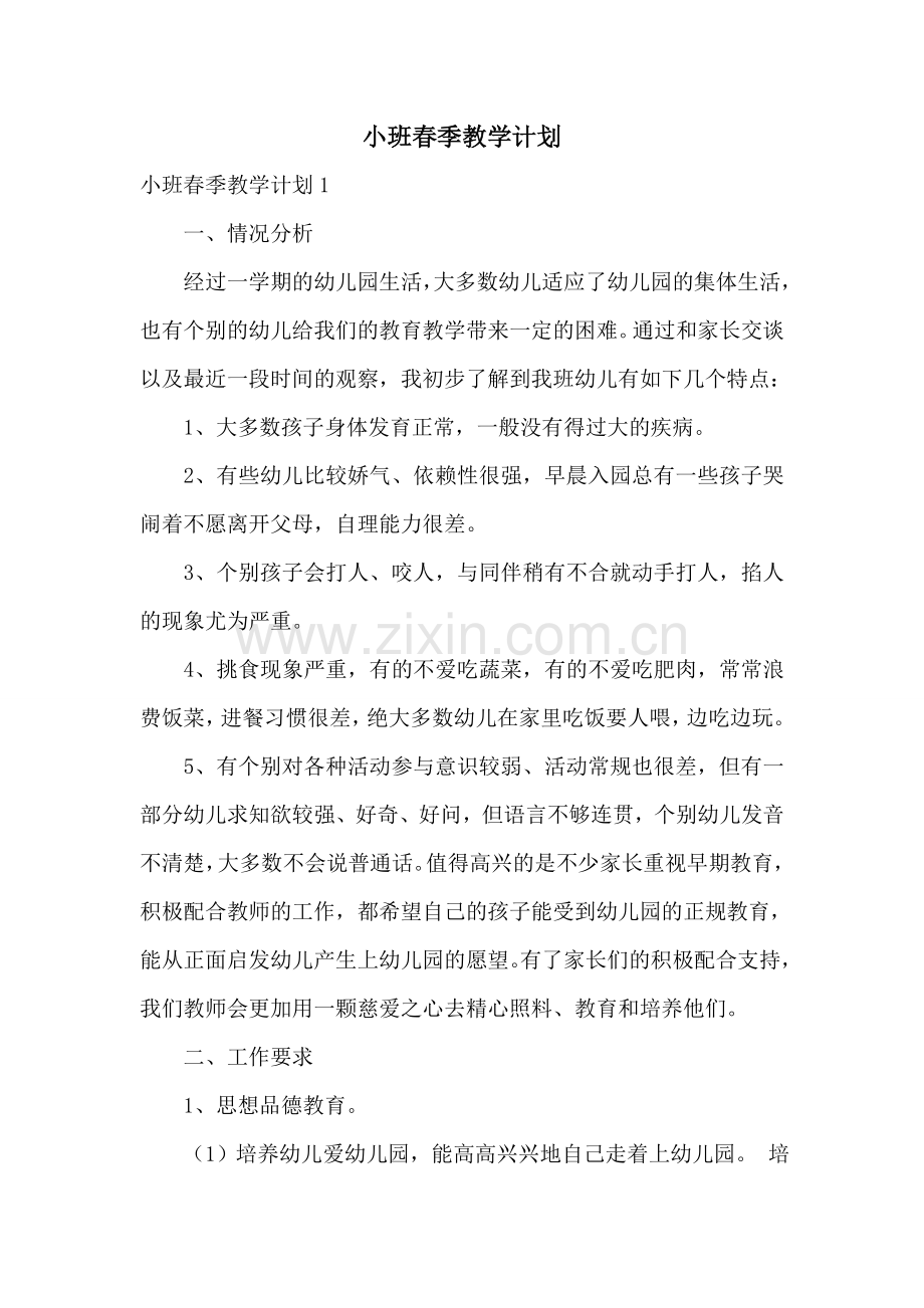 新年过去了,我们迎来了小班的第二学期。现如今,我们班的新生经过两周的学习生活情绪基本已稳定,个别孩子还有哭泣行为。原来的幼儿在经过一学期在园的生活和学习之后,都愿意上幼儿园,同时能积极参与老师组织的各项活动;在生活自理方面养成了良好的习惯,会自己动手吃饭,并注意将餐具轻轻放,午睡时在教师的帮助下,会穿脱衣服;在学习、游戏方面也形成了一定的常规。上课时,能安静坐下来,举手回答问题,积极动脑;游戏时能听教师的指示进行游戏,主动参与活动;但是,还有不足之处需要我们不断完善。孩子们很喜欢参加体育活动,做游戏。但毕竟还是小班幼儿,同伴之间由于年龄的’差异和能力的强弱,所以自控能力较差,卫生习惯也不好,争抢东西现象时有发生。幼儿在上课时插嘴现象也比较严重,针对幼儿各方面的表现,制定新的教育教学目标,促进幼儿的全面发展。