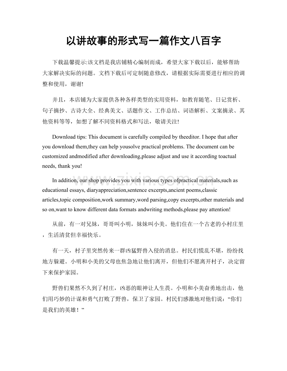 以讲故事的形式写一篇作文八百字