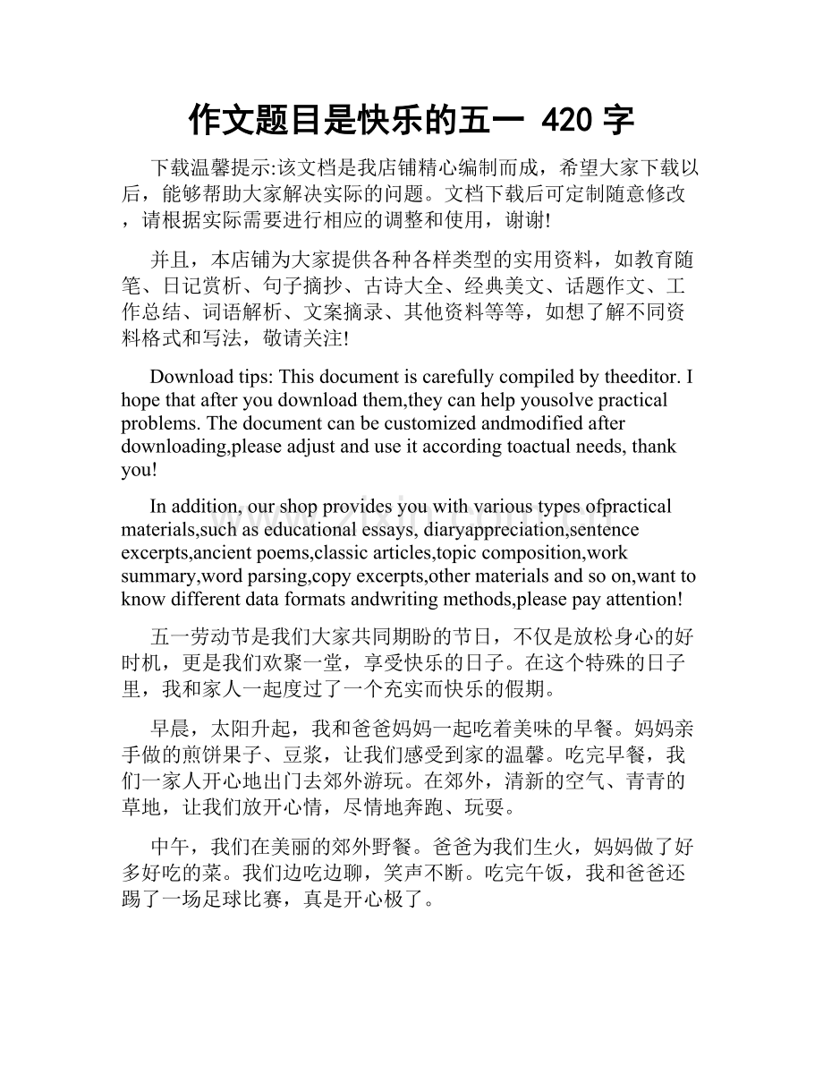 作文题目是快乐的五一 420字