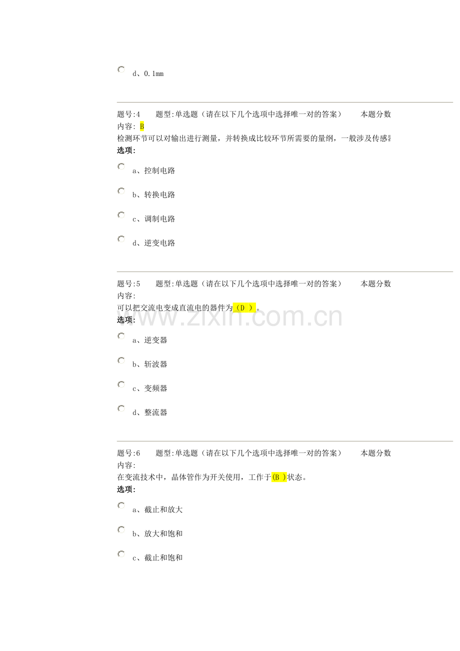 题号:3 题型:单选题(请在以下几个选项中选择唯一对的答案) 本题分数:5