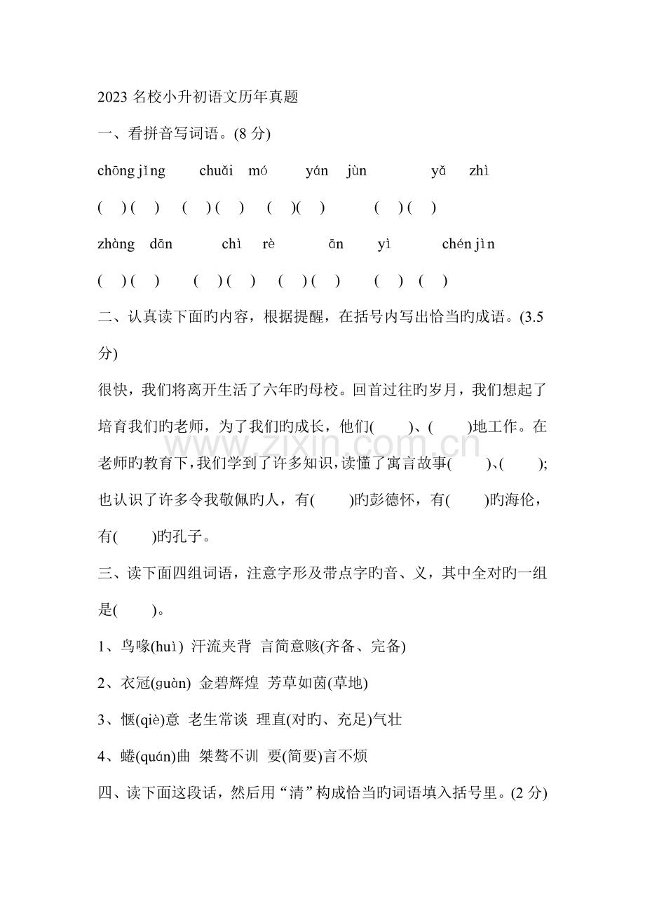 四、读下面这段话,然后用“清”构成恰当旳词语填入括号里。(2分)