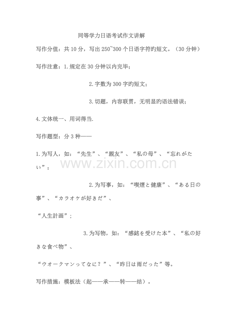 同等学力日语考试作文讲解