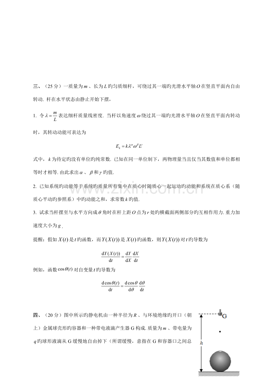 1. 令表达细杆质量线密度. 当杆以角速度绕过其一端旳光滑水平轴在竖直平面内转动时,其转动动能可表达为