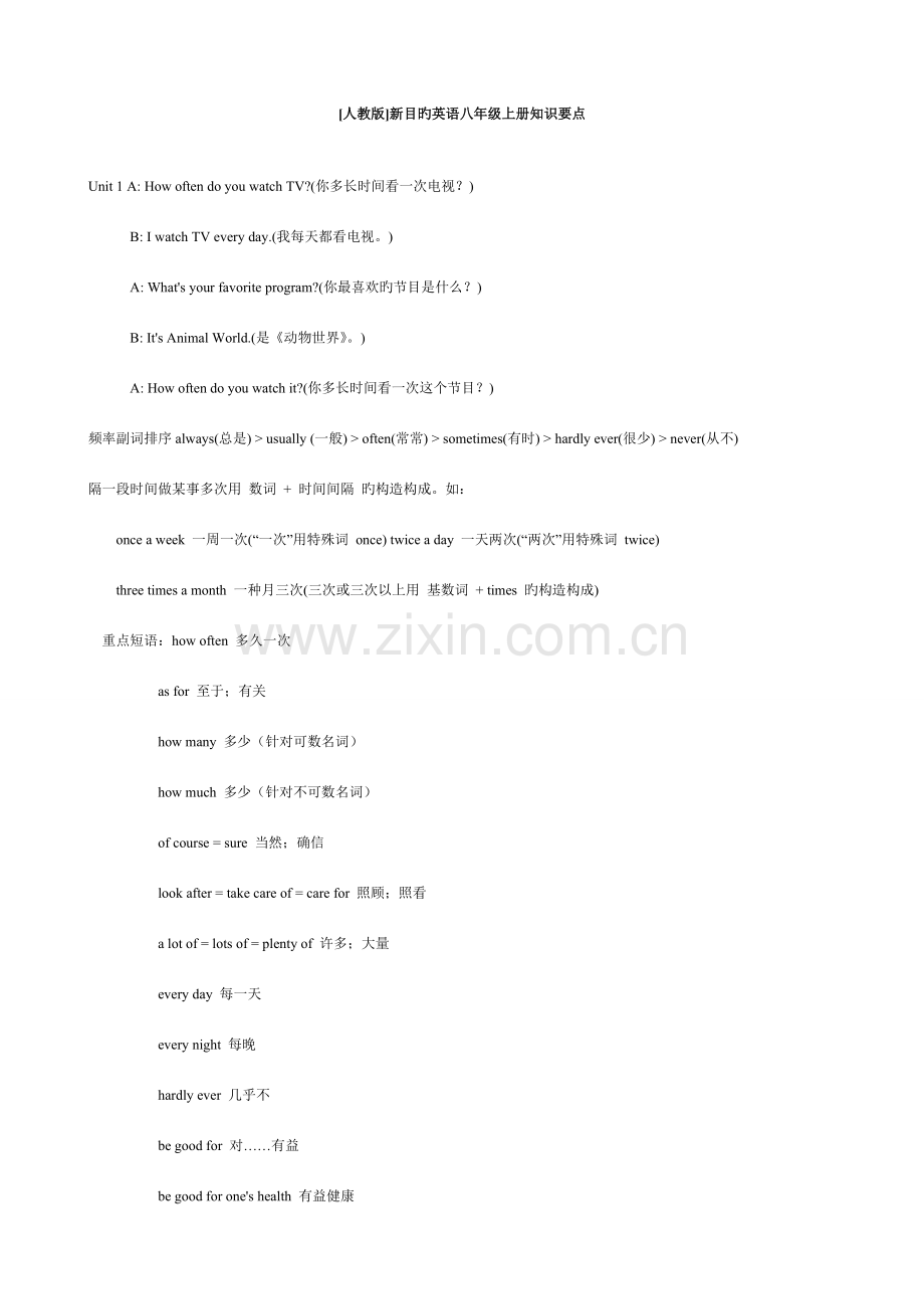 [人教版]新目旳英语八年级上册知识要点