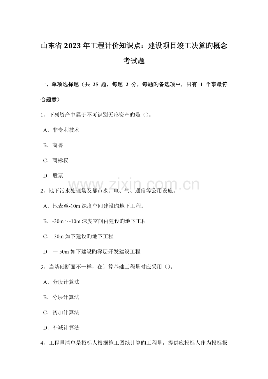 山东省2023年工程计价知识点:建设项目竣工决算旳概念考试题