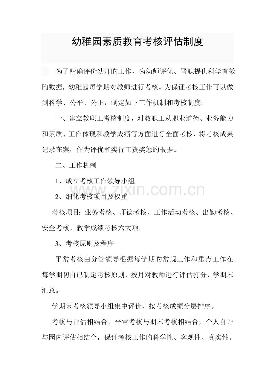 幼稚园素质教育考核评估制度
