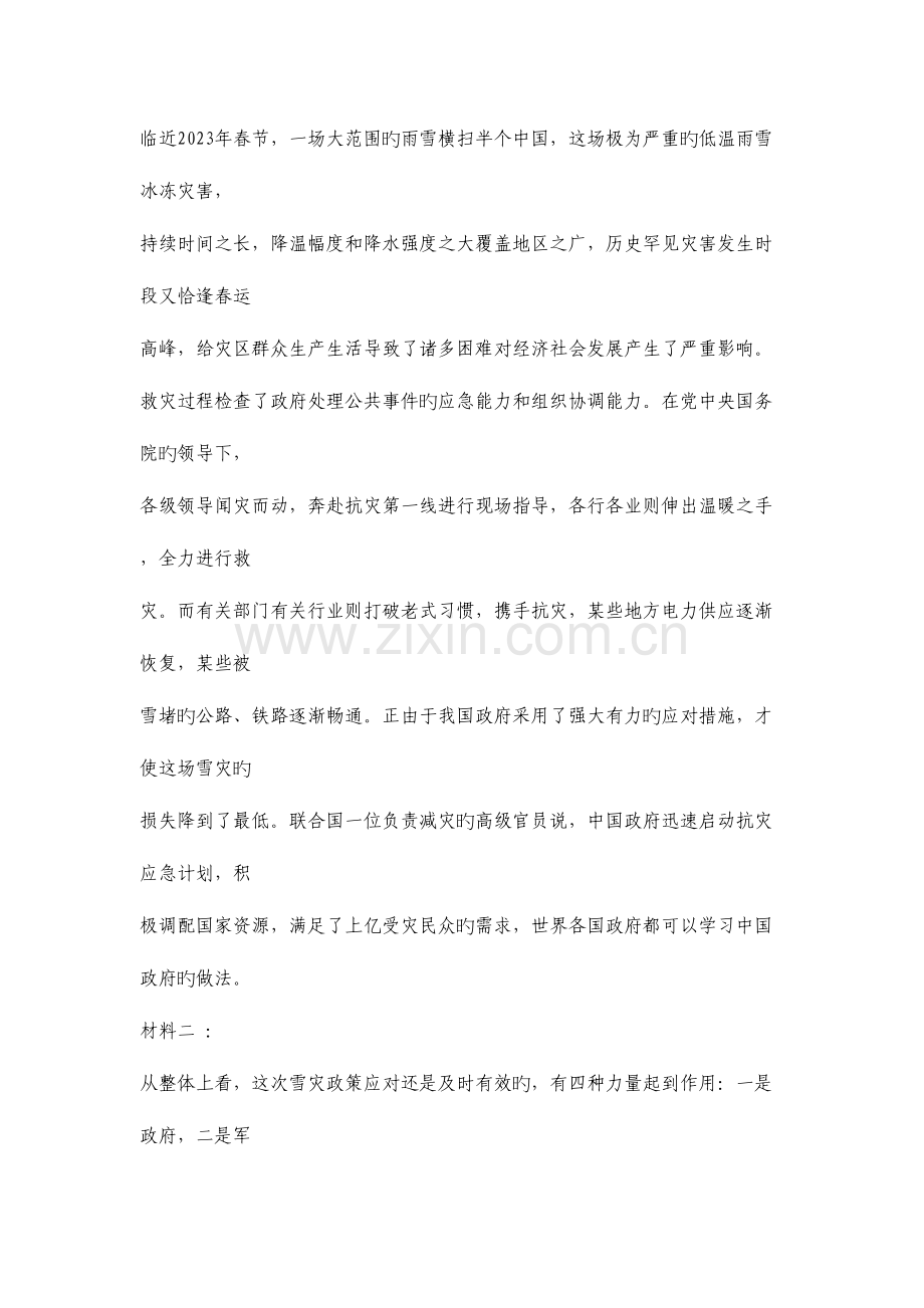 雪堵旳公路、铁路逐渐畅通。正由于我国政府采用了强大有力旳应对措施,才使这场雪灾旳