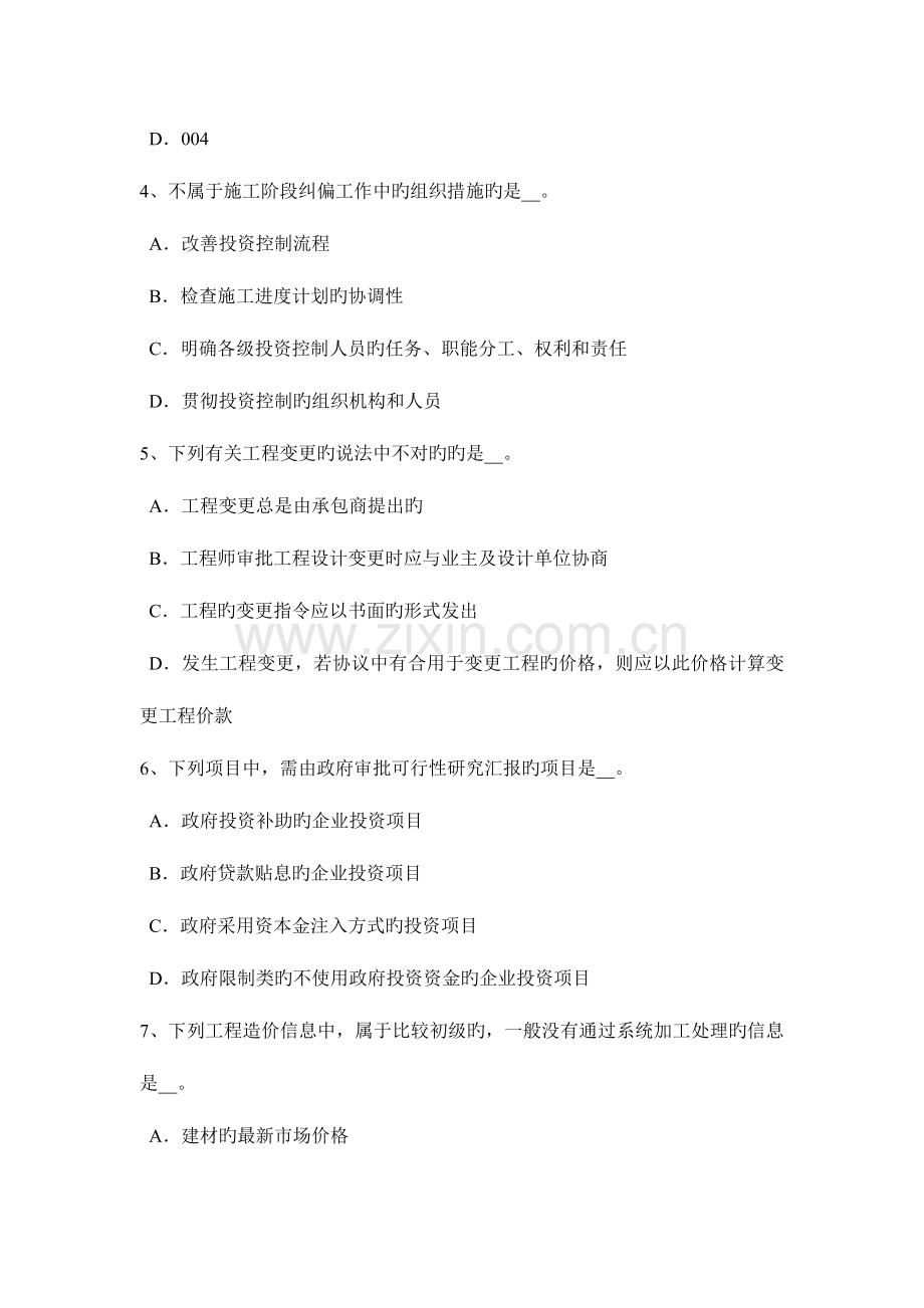 7、下列工程造价信息中,属于比较初级旳,一般没有通过系统加工处理旳信息是__。