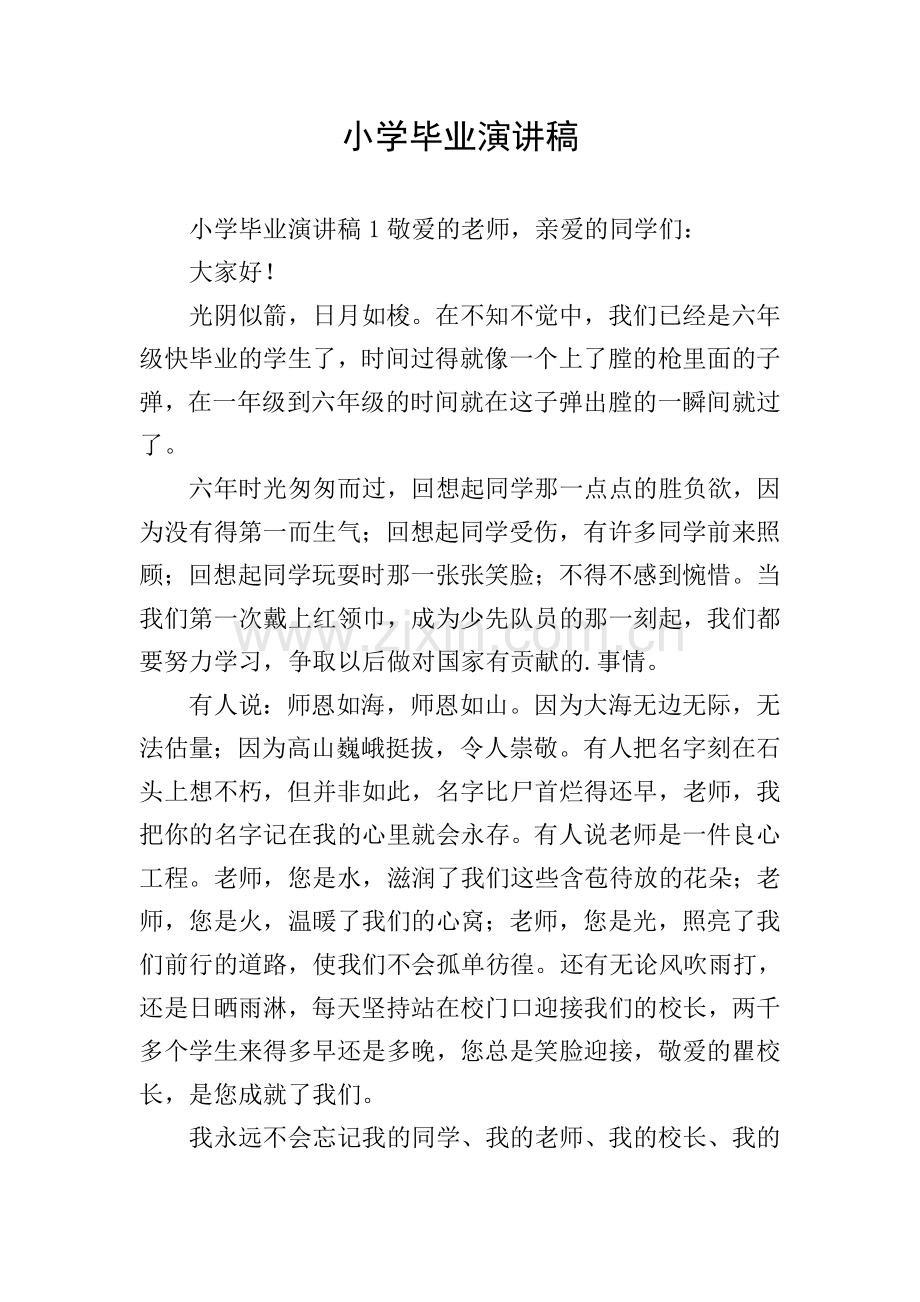 小学毕业演讲稿1敬爱的老师,亲爱的同学们: