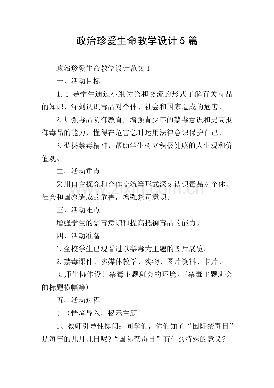 政治珍爱生命教学设计5篇