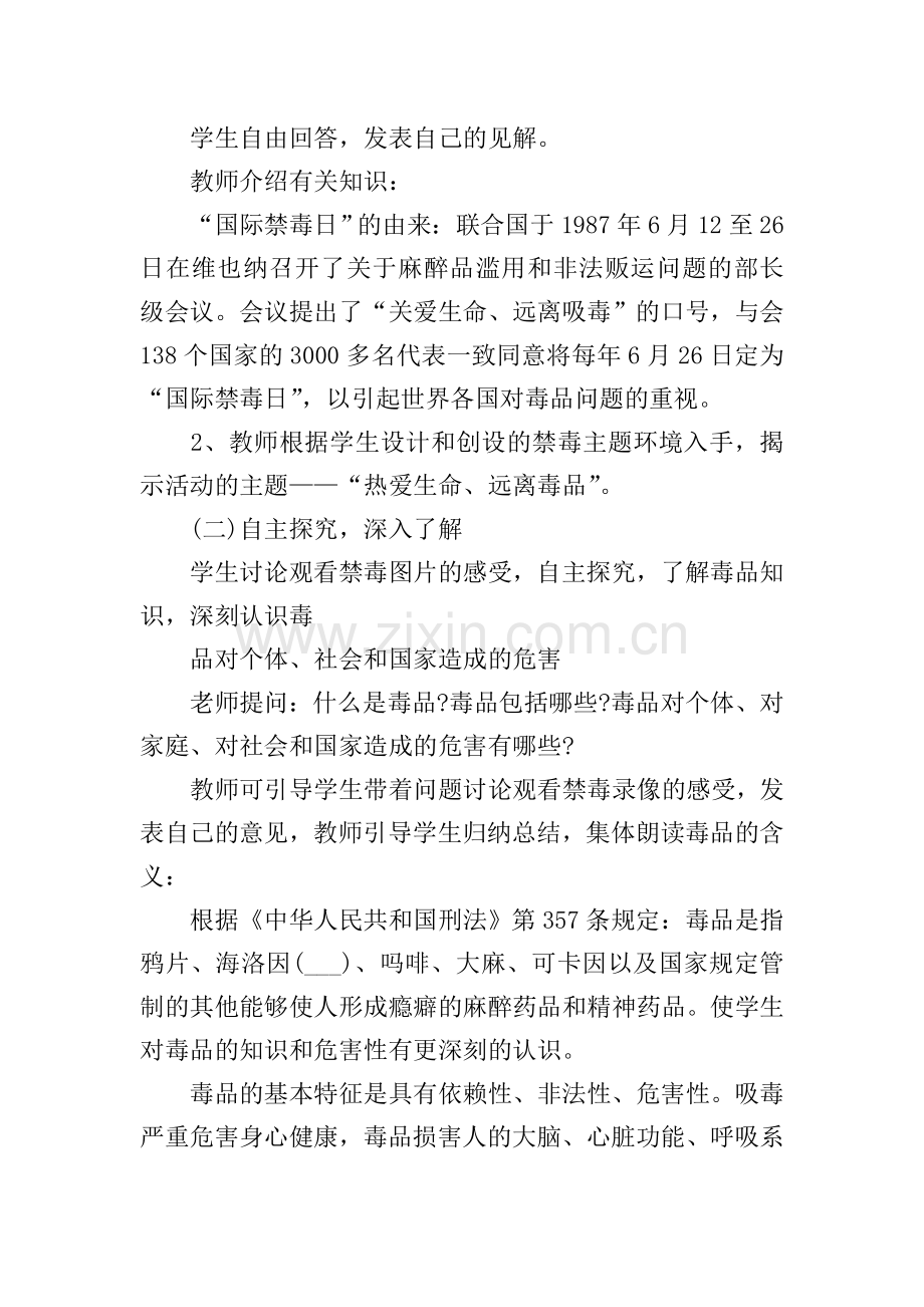 1、教师引导性提问:同学们,你们知道“国际禁毒日”是每年的几月几日呢?“国际禁毒日”有什么特殊的意义?