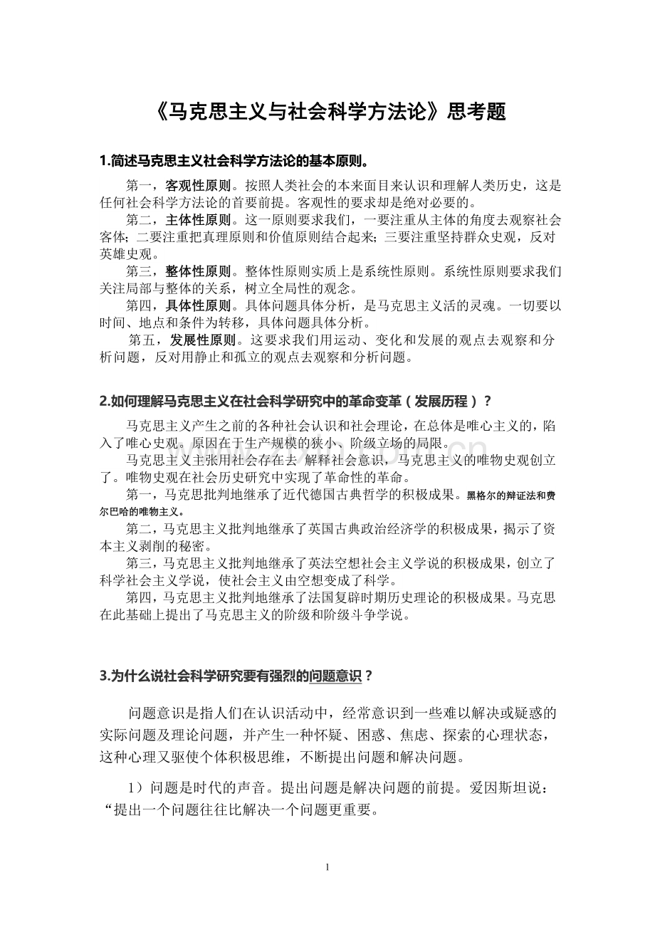 《马克思主义与社会科学方法论》思考题