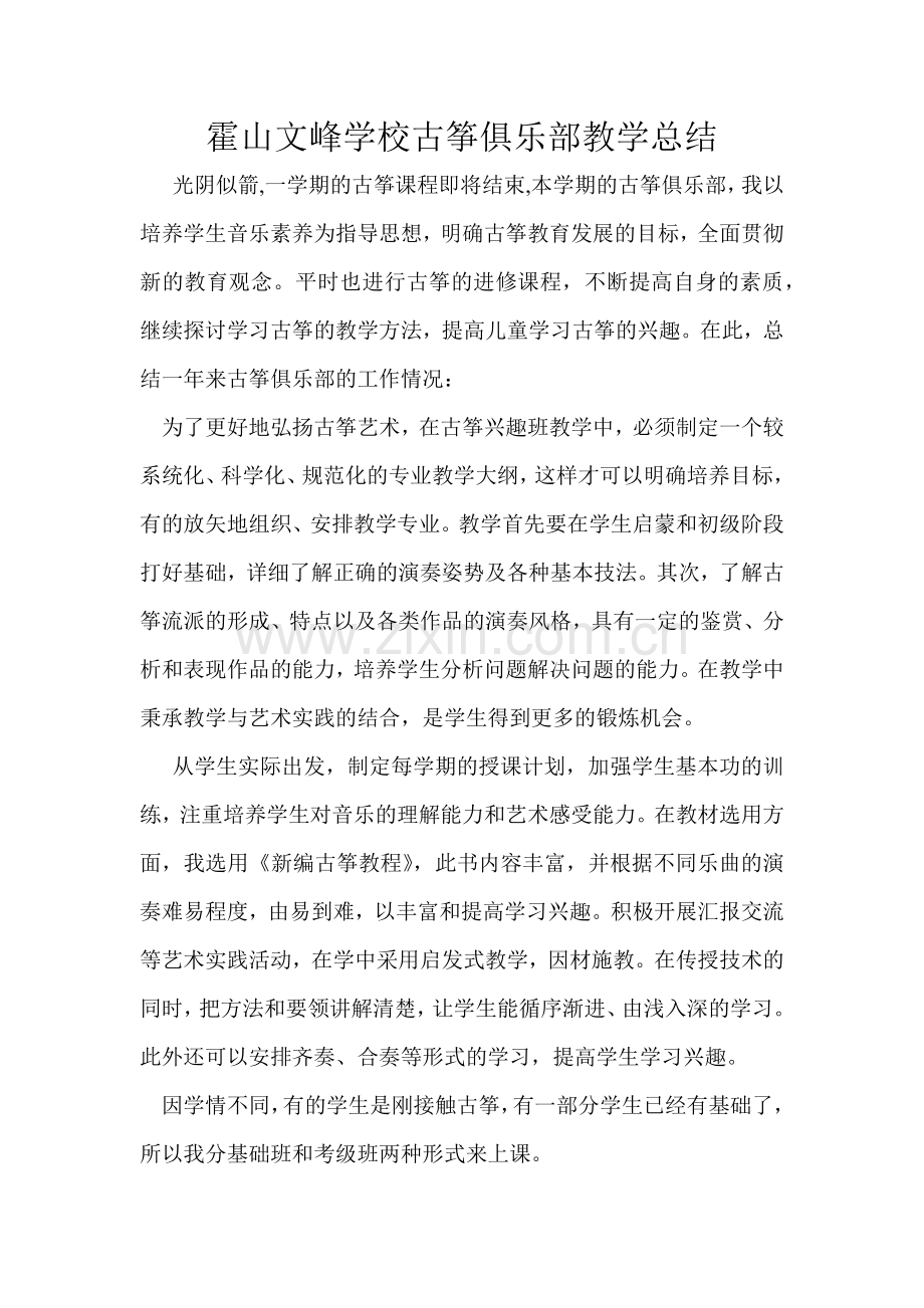 霍山文峰学校古筝俱乐部教学总结