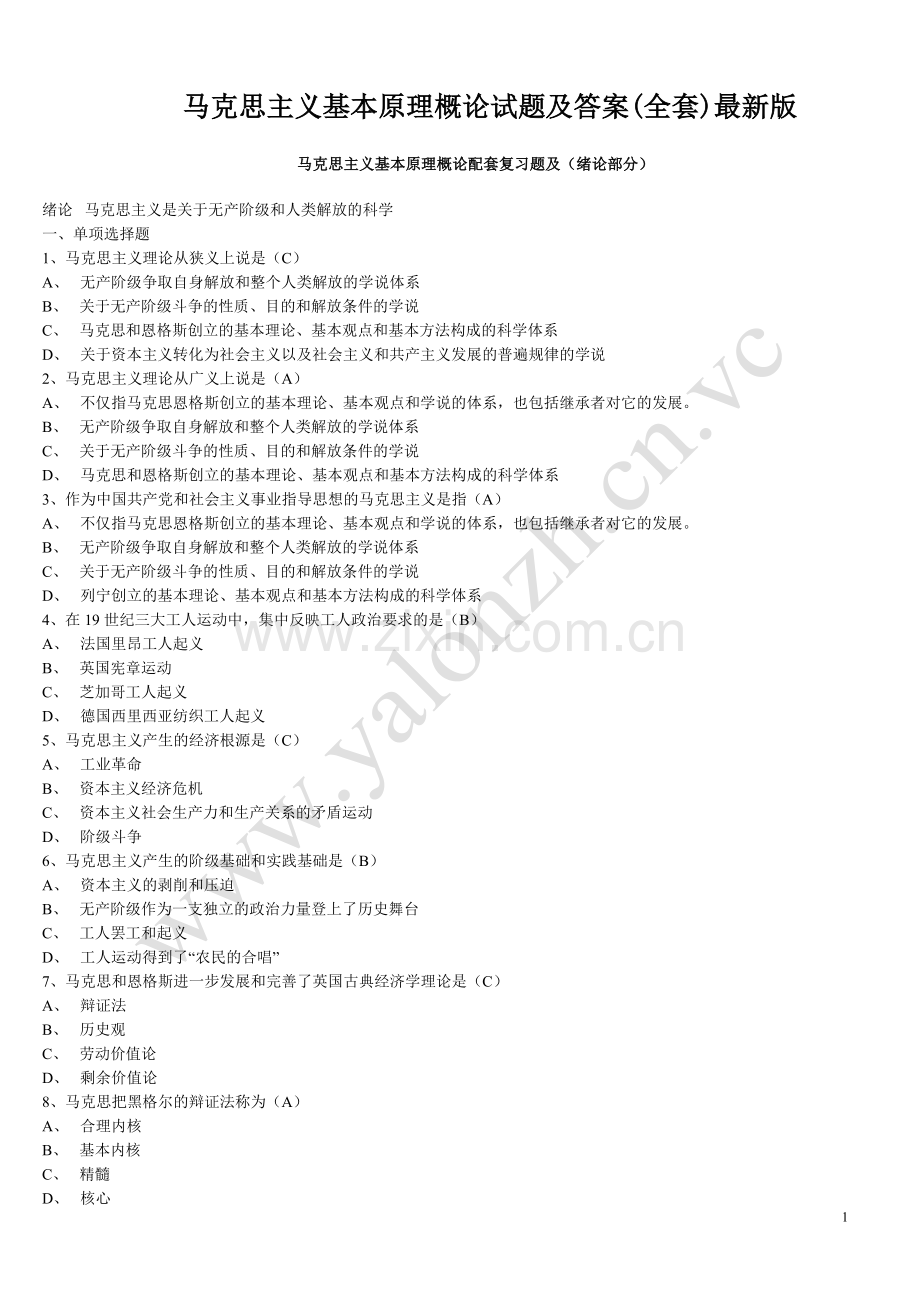 马克思主义基本原理复习题1(附答案)