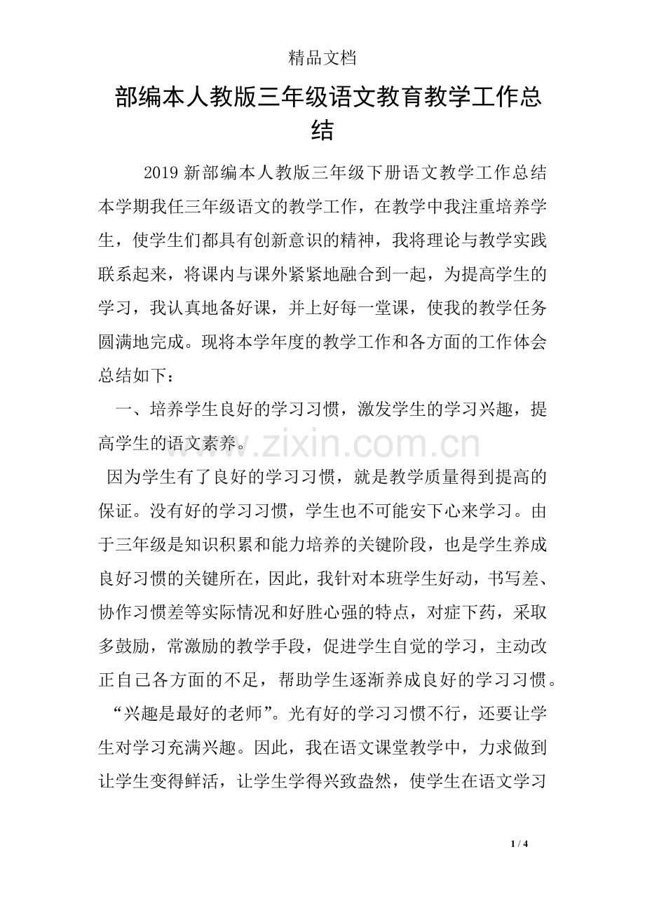 2019新部编本人教版三年级下册语文教学工作总结 本学期我任三年级语文的教学工作,在教学中我注重培养学生,使学生们都具有创新意识的精神,我将理论与教学实践联系起来,将课内与课外紧紧地融合到一起,为提高学生的学习,我认真地备好课,并上好每一堂课,使我的教学任务圆满地完成。现将本学年度的教学工作和各方面的工作体会总结如下: