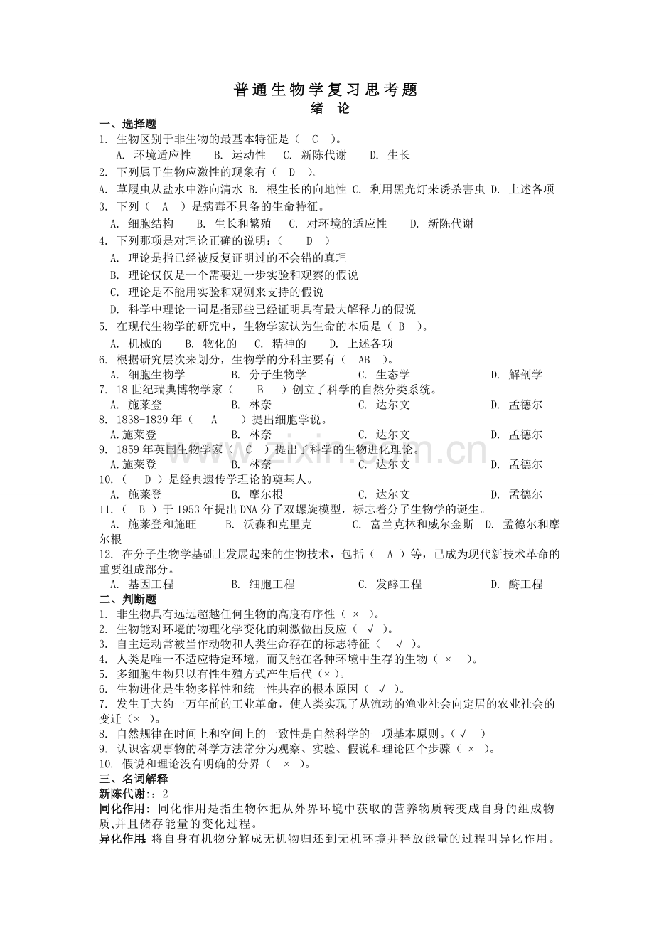 普通生物学复习思考题