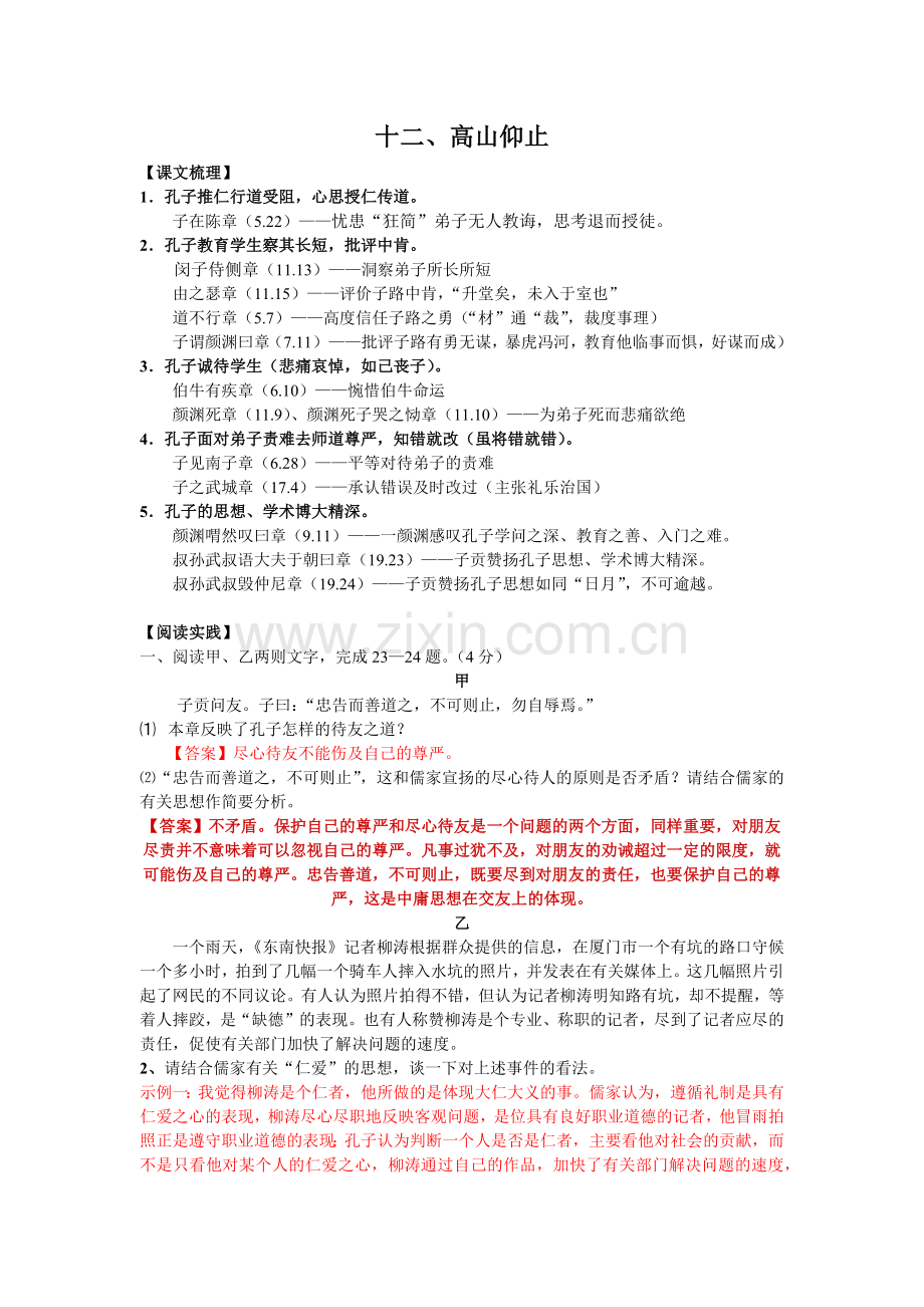 参考答案:表现了子贡对孔子的高度敬仰之情、尊重老师的严正态度,斥责了叔孙武叔的诋毁,讽刺了其浅薄无知。