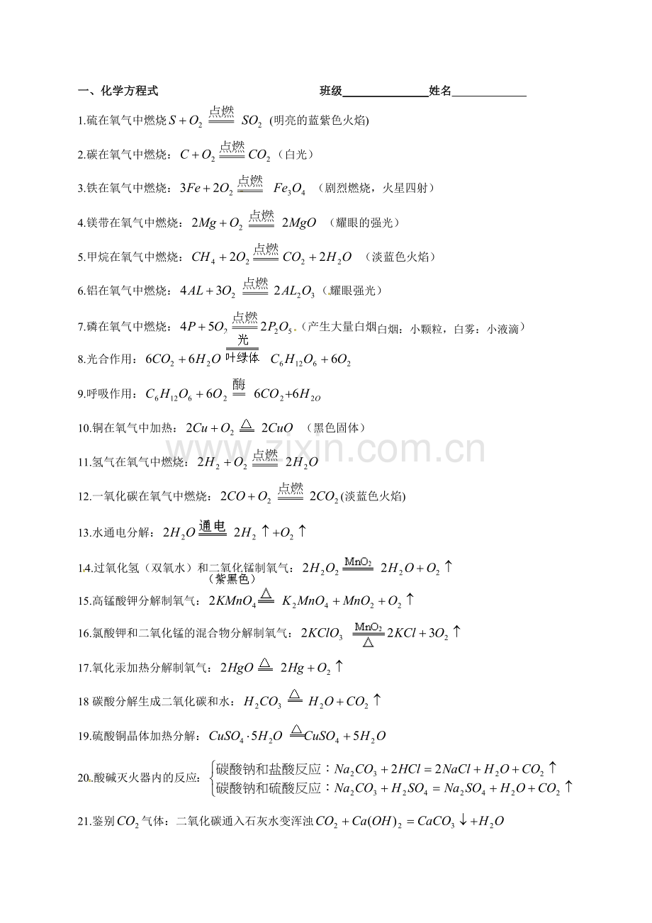 7.磷在氧气中燃烧: (产生大量白烟白烟:小颗粒,白雾:小液滴)[来源:Zxxk.Com]