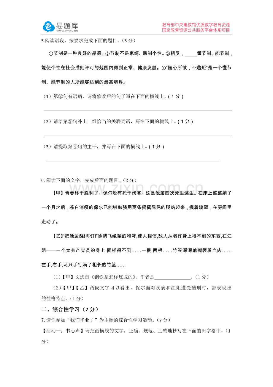 7.请你参加“我们毕业了”为主题的综合性学习活动。(7分)